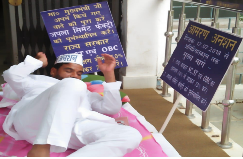 शिवपूजन मेहता 1992 से बंद पड़ी जलपा सीमेंट फैक्ट्री को खुलवाने की मांग को लेकर बुधवार से विधानसभा के बाहर आमरण अनशन पर बैठे थे। विधानसभा के मुख्य द्वार पर हाथों में तख्तियां लेकर बैठे कुशवाहा शिवपूजन मेहता ने मुख्यमंत्री रघुवर दास से अपने वायदे को पूरा करने की मांग करते हुए जपला सीमेंट फैक्ट्री को पुनर्स्थापित करने की मांग की है। इसके साथ ही उन्होंने राज्य सरकार से एससी/एसटी/ओबीसी की आरक्षण सीमा 50 प्रतिशत से बढ़ाकर 73 प्रतिशत करने की मांग की है।