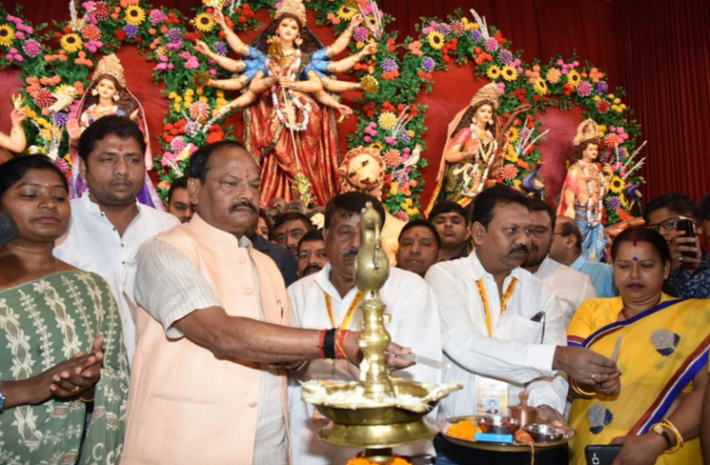 (रांची): मुख्यमंत्री रघुवर दास ने आज राजधानी रांची के बकरी बाजार स्थित भारतीय युवक संघ पूजा पंडाल का उदघाटन किया। इस मौके पर मुख्यमंत्री ने राज्यवासियों को नवरात्र की शुभकामनाएं दी। मुख्यमंत्री रविवार को सुबह जमशेदपुर रवाना होने से पहले बकरी बाजार स्थित दुर्गा पूजा पंडाल पहुंचे। इस मौके पर मेयर आशा लकड़ा समेत पूजा समिति के कई पदाधिकारी मौजूद थे। मुख्यमंत्री ने पूजा-अर्चना कर राज्य की खुशहाली की कामना की।