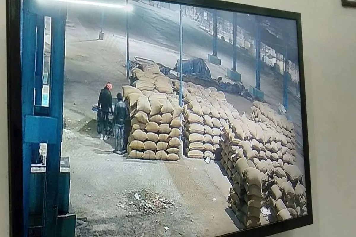 सीसीटीवी कैमरे में 1 जनवरी की रात करीब 2.20 मिनट पर दो चोर मंडी कार्यालय के सामने प्लेटफार्म पर जहां सोयाबीन के ढेर लगे हुए थे थैलागाड़ी लेकर आए। इसके बाद लुढक़ते थैलागाड़ी पर पत्थर लाकर लगाया, फिर सोयाबीन की बोरे के पास जाकर लगाया। रात करीब 2.35 पर दो बोरी उठाकर थैलागाडी पर रखी। फिर बारदान उठाकर लाए रस्सी आदि उठाकर, एक ने मुंह पर मफलर बांध रखा था, जबकि दूसरे का चेहरा भी सीसीटीवी कैमरे में साफ नजर नहीं आ रहा था। चोर आसानी से बोरे थैलागाड़ी में रखते है और करीब सुबह 4.27 बजे लेकर मंडी के पहले गेट पर पहुंचते है, सोयाबीन भरे बोरों को छोटे गेट से बाहर फैंकते है और ऑटो का इंतजार करते हैं, ऑटो आने के बाद उसमें रखकर रवाना हो जाते हैं।