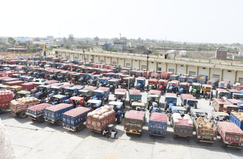 नंबर आने पर प्याज ट्राली लेकर किसान सब्जी मंडी पहुंचे