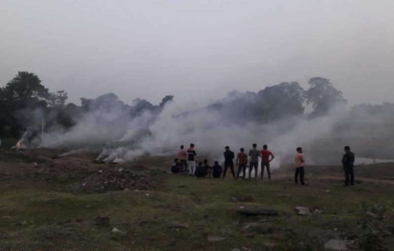 लोग बुझाने का प्रयास करने लगे। कुछ लोगों ने चालक को ट्रैक्टर-ट्राली पास में पानी की खाल में ले जाने के लिए कहा। चालक ने देर नहीं की और ट्रैक्टर-ट्राली को तलैया के पास खुले मैदान में ले जाकर जलती घांस को खाली कर दिया। इससे बड़ा हादसा टल गया।