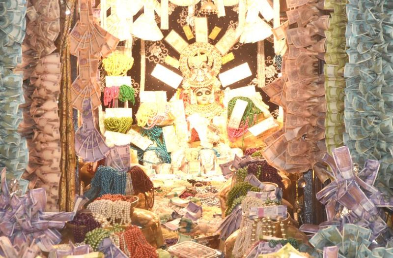 माता के शृंगार में 10, 20, 50, 100, 200, 500 रुपए के नोटों के साथ ही सोने-चांदी के आभूषण से मंदिर सुसज्जित नजर आ रहा था। नोटो की लड़ि़या लोगों को अचंभित कर रही थी, वही भक्त लम्बी लम्बी कतार में लगकर दर्शन कर रहे थे।