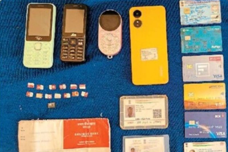 रतलाम जीआरपी ने आरोपी से जब्त किए मोबाइल, सिम कार्ड, एटीएम । फोटो- पत्रिका