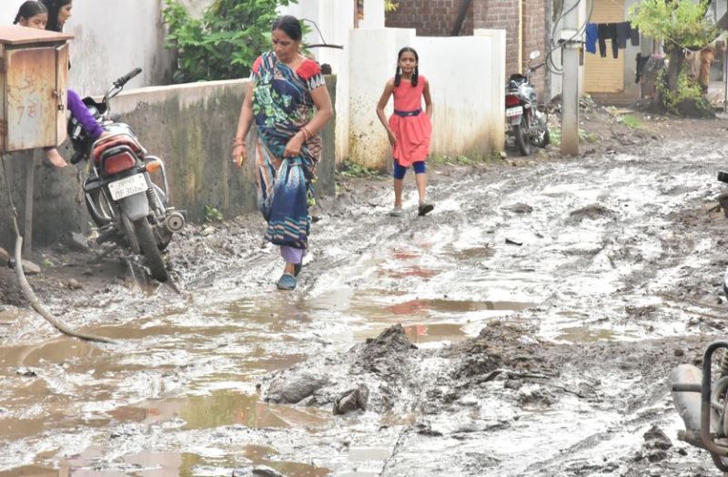 हालात इतने खराब है कि बच्चों को तो घर से बाहर निकले भी नहीं दिया जाता है, चंद घंटों की बारिश में क्षेत्र में पसरा पड़ा कीचड़ और पानी घरों में भर जाता है और लगता कब इस जीवन से निजात मिलेगी। यह हाल है रतलाम के ईश्वर नगर और राम-रहीम नगर के वासियों के जिनकी कोई सुनने वाला नहीं है। क्षेत्रिय पार्षदों के समक्ष गुहार लगाई तो आश्वासन मिला, तो किसी ने कच्चे मुरम को डलवा कर मुसिबत और खड़ी कर दी। ईश्वर नगर में बारिश में नाले की निकासी बंद होने के कारण पानी सड़कों पर घुटने घुटने बह रहा था, इस कारण से पूरी सड़क उखड़ गई। लोगों के घरों में पानी भर जाता है, क्योंकि आगे पानी की निकासी तक नहीं है।