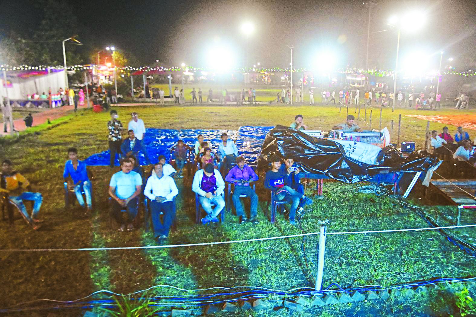 रतलाम। नगर निगम द्वारा आयोजित नवरात्र कालिका माता मेला के दूसरे दिन निगम के सांस्कृतिक मंच पर कामिनी ठाकुर ने गणेश वंदना के साथ भजन संध्या की शुरुआत की। रिमझिम बारिश में दर्शकों का अभाव और मंच के सामने निगम द्वारा कुछ कुर्सियां और बिछा रखी बैठने के लिए प्लास्टिक पर पानी भरा पड़ा था। यह बात अलग है कि मेला आयोजक टेंट में बैठकर भजनों का आनंद लेते नजर आए। मंच के सामने कीचड़ और पानी होने से कई दर्शकों ने दूर खड़े होकर ही मंच पर चल रहे कार्यक्रम को निहारा, यहां कई नागरिक यह भी कहते नजर आए कि नगर निगम के अधिकारियों को पता है कि लगातार बारिश हो रही है, दर्शकों के लिए भी टेंट की व्यवस्था की जा सकती थी, ताकि आगे भी होने वाले आयोजनों को आराम से बैठकर देख सकते थे। मेला आयोजकों के लिए टेंट तम्बु दर्शकों के लिए खुला आसमान, यह शहर की जनता के लिए मेला है या निगम अधिकारियों का।