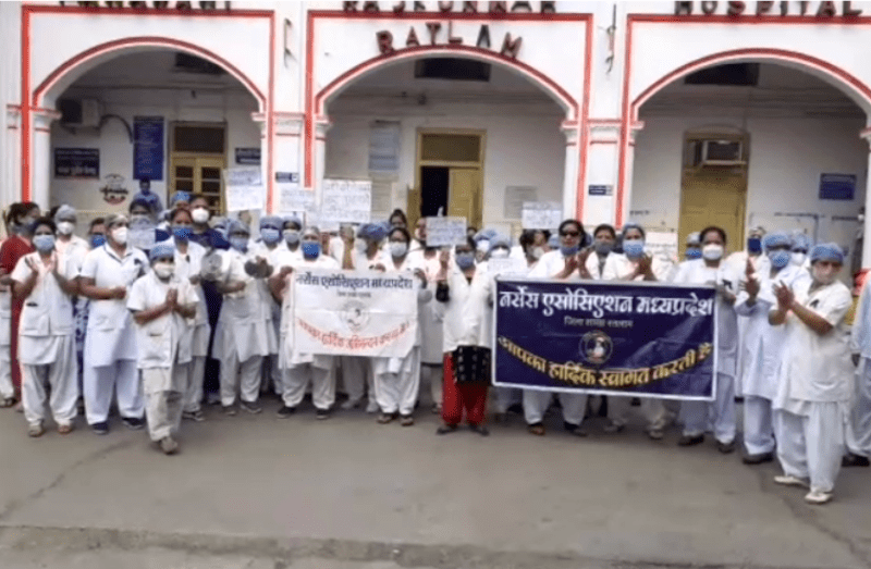 रतलाम/ मध्य प्रदेश में जूनियर डॉक्टरों की हड़ताल खत्म होने के बाद से शुरु हुए नर्सों के आंदोलन का आज छटा दिन है। प्रदेशभर में नर्सेंस एसोसिएशन अपनी छह सूत्रीय मांगों को लेकर प्रदर्शन कर रही हैं। इसी कड़ी में आज रतलाम के मेडिकल कॉलेज में नर्सेज एसोसिएशन ने थाली बजाकर विरोध व्यक्त किया। उनका कहना है कि, थाली बजाकर वो सरकार को जगाने की कोशिश कर रही हैं।