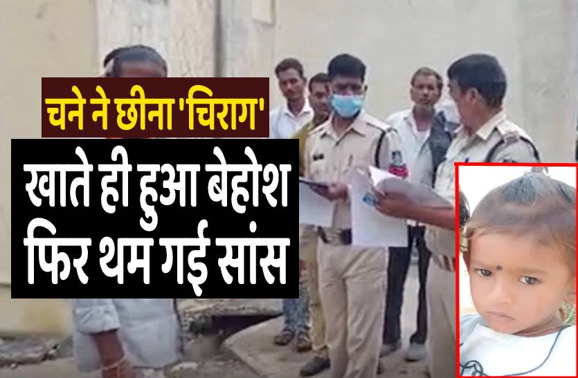 रतलाम. रतलाम में शनिवार को एक हैरान कर देने वाली घटना सामने आई। यहां एक तीन साल के बच्चे की चना खाते समय मौत हो गई। आशंका है कि चना श्वांस नली में फंसने की वजह से बच्ची की मौत हुई है। बच्चे के शव को पोस्टमार्टम के लिए भेज दिया गया है और पोस्टमार्टम रिपोर्ट आने के बाद ही मौत के सही कारणों का खुलासा हो पाएगा। घटना शिवगढ़ थाने के अंतर्गत आने वाले पाटड़ी गांव की है। बच्चे को बेहोशी की हालत में परिजन अस्पताल लेकर पहुंचे थे जहां डॉक्टरों ने उसे मृत घोषित कर दिया।