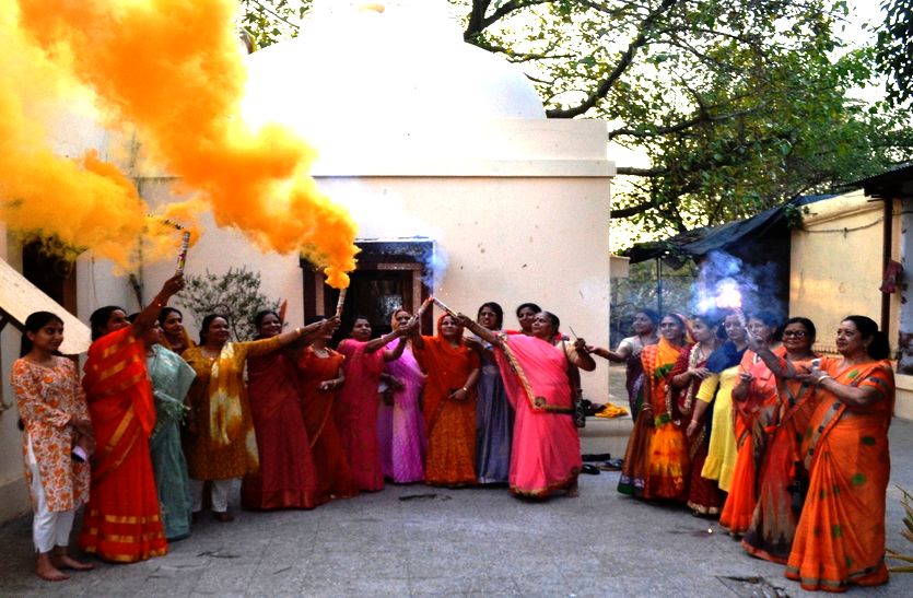 महिलाओं ने आतिशबाजी कर बांटी मिठाई