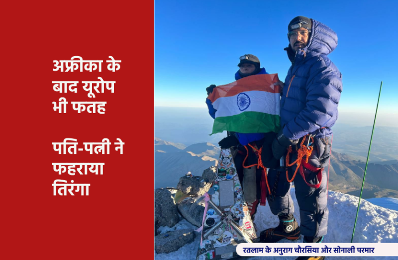 जब पूरे देश में स्वतंत्रता दिवस का जश्न मनाया जा रहा था, देशभर में तिरंगा लहरा रहा था, तभी मध्यप्रदेश के इस कपल ने विदेशों में भी झंडे गाड़ दिए। रतलाम के यह पत्नी-पत्नी ने 15 अगस्त को यूरोप की सबसे ऊंची चोटी माउंट एल्ब्रुस को फतह कर लिया। तिरंगा लहराते ही यूरोप से लेकर मध्यप्रदेश तक खुशी का माहौल छा गया। रतलाम के पर्वतारोही (Mountaineering) अनुराग चौरसिया और सोनाली परमार दूसरे देश की सर्वोच्च चोटी पर तिरंगा फहराने वाले पहले भारतीय दंपती बन गए हैं।