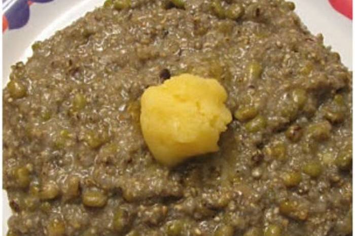 200 ग्राम बाजरा दाना, 150 ग्राम मूंग की दाल, दो बड़े चम्मच देसी घी, चुटकी भर हींग, जीरा आधा चम्मच, थोड़ी कटी हरी मिर्च, हल्दी आधा चम्मच, हरे मटर के दाने एक कटोरी, नमक स्वाद के अनुसार लें।