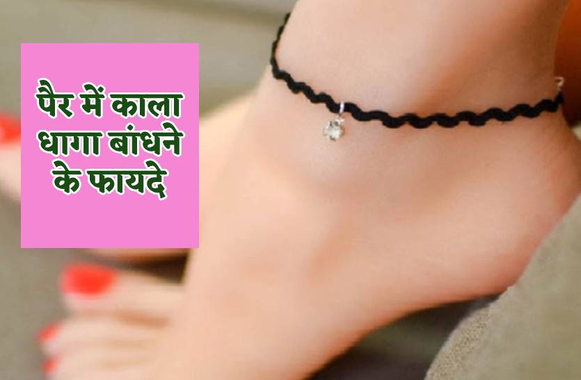 - ज्योतिष शास्त्र के मुताबिक महिलाओं को हमेशा बाएं पैर यानी लैफ्ट लेग में काला धागा बांधना चाहिए। कन्या या फिर महिलाओं को हमेशा शनिवार के दिन पैर में काला धागा बांधना चाहिए। इससे उनका स्वास्थ्य सही रहता है और मानसिक शांति भी बनी रहती है।