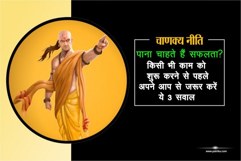 जब भी व्यक्ति कोई काम शुरू करना चाहता है तो उसके मन में कई तरह के सवाल आते हैं। वो घबराता है कि कहीं उसे असफलता मिली तो क्या होगा या क्या वो उस काम को कर पायेगा। तमाम तरह के ऐसी ही सवाल व्यक्ति के दिमाग में घूमते हैं। इसलिए चाणक्य कहते हैं कि जब भी कोई काम शुरू करें तो अपने आप से 3 सवाल जरूर पूछें। पहला सवाल; आप यह काम क्यों कर रहे हैं? दूसरा सवाल; इसके क्या परिणाम होंगे? और तीसरा सवाल; क्या आप इस काम में सफल हो पाएंगे? जब इन तीनों सवालों के आपको संतोषजनक उत्तर मिल जाए, तभी उस काम को करने की दिशा में आगे बढ़ें।