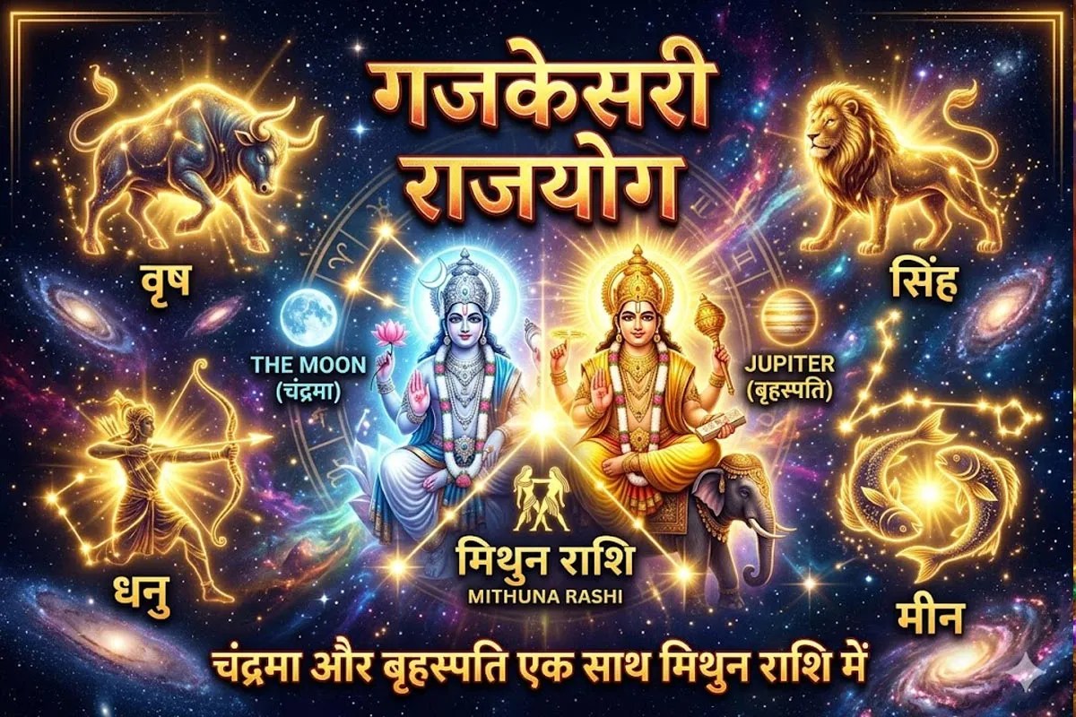 Gajkesari Rajyoga 2026 : गजकेसरी राजयोग का असर: वृष, मिथुन, सिंह, धनु और मीन वालों के लिए खुशखबरी (फोटो सोर्स: AI@Gemini)