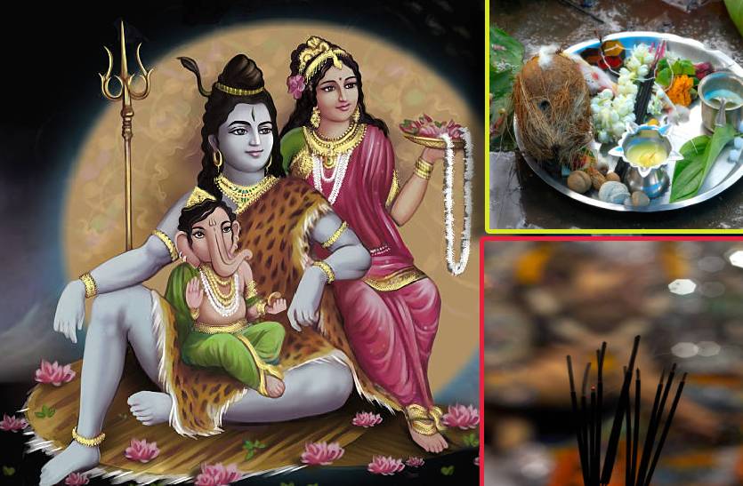 2. शुद्ध बालू, गंगाजल और मिट्टी से बनाई भगवान शंकर, माता पार्वती, रिद्धि-सिद्धि, गणेश आदि की प्रतिमा बनाकर चौकी पर पीला कपड़ा बिछाकर स्थापित करें।