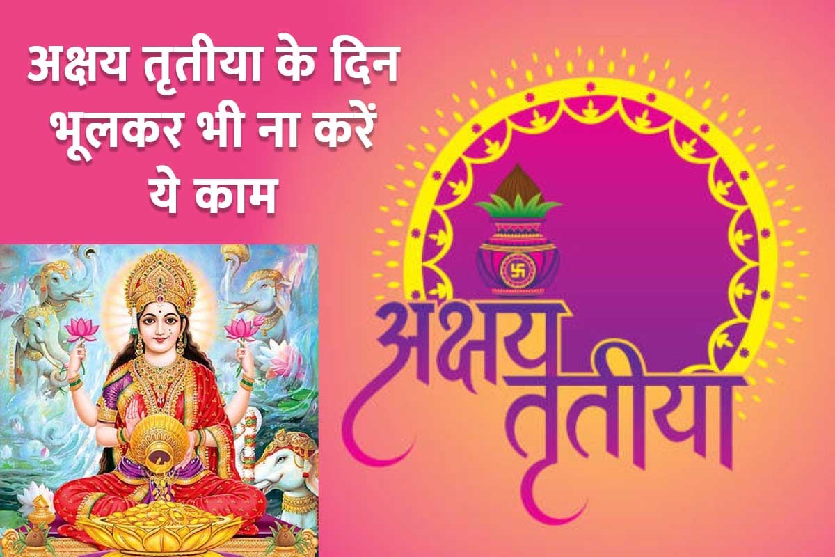 हिंदू धर्म की मान्यताओं के अनुसार वैशाख मास के शुक्ल पक्ष की तृतीया तिथि को अक्षय तृतीया का त्योहार मनाया जाता है। इस साल 3 मई को मंगलवार के दिन अक्षय तृतीया मनाई जाएगी। अक्षय तृतीया के दिन पूजा-पाठ, जप-तप और दान-पुण्य का बहुत महत्व बताया गया है। माना जाता है कि इस दिन माता लक्ष्मी की सच्चे मन से और विधि-विधान से पूजा करने पर सुख-समृद्धि की प्राप्ति होती है। वहीं कुछ ऐसे काम भी बताए गए हैं जिन्हें भूलकर भी अक्षय तृतीया के दिन नहीं करना चाहिए, वरना माता लक्ष्मी के रूठने से आपके घर में दरिद्रता आ सकती है...