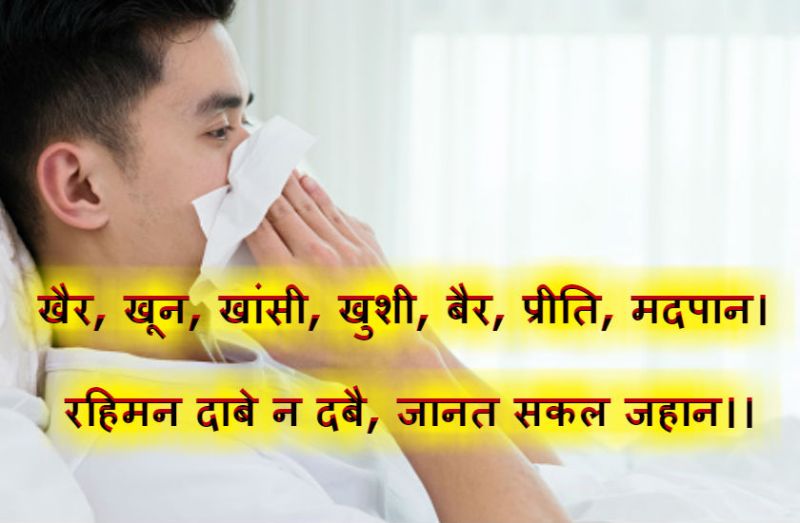 खांसी... रहीम के दोहे के अनुसार, जब इंसान को खांसी होती है तो उसके बारे में सभी लोगों को पता चल जाता है। आप खांसी छुपा नहीं सकते हैं।