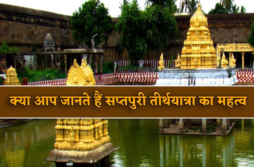 Saptpuri Tirth Yatra क्या आपने कभी सुना है कि कुछ शहरों की यात्रा की जाए, तो इंसान को मोक्ष प्राप्त होता है। यदि नहीं, तो पत्रिका.कॉम इस लेख में आपको बता रहा है देश के ऐसे ही सात शहरों के बारे में जिन्हें मोक्ष प्राप्ति के तीर्थस्थल के रूप में जाना-पहचाना जाता है। संख्या में सात होने के कारण इन्हें सप्तपुरी भी कहा जाता है। धार्मिक मान्यताओं के अनुसार सतपुरी में भारत के सात पवित्र शहर हैं अयोध्या, मथुरा, द्वारिका, वाराणसी, हरिद्वार, उज्जैन और कांचीपुरम। आपको बता दें कि सतपुरी के शहर भारत की एकता और अखंडता के प्रतीक माने जाते हैं। शास्त्रों में इन्हीं तीर्थ शहरों की यात्रा से व्यक्ति मोक्ष को प्राप्त होता है। आप भी जानें इन शहरों की खासियत...