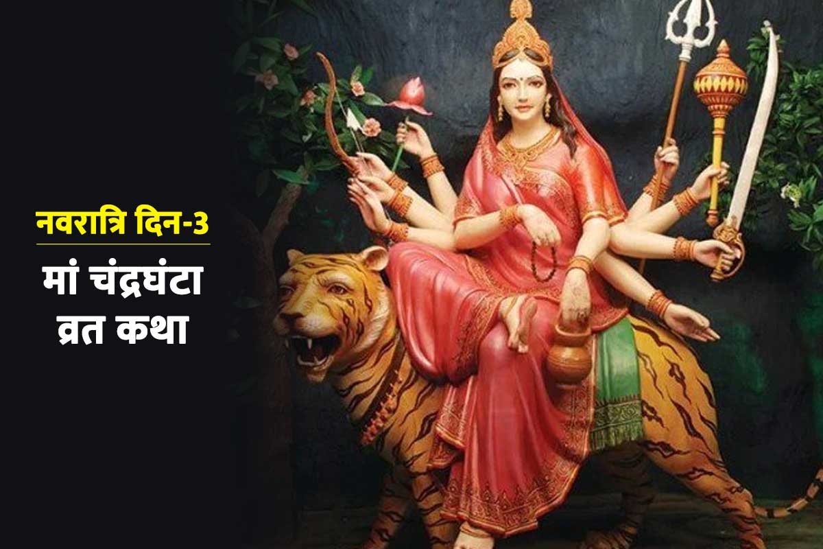 Navratri 3rd Day Katha In Hindi, Maa Chandraghanta Ki Kahani : आज शारदीय नवरात्रि की तृतीया तिथि है। नवरात्रि के तीसरे दिन मां चंद्रघंटा की पूजा का विधान है। शास्त्रों के अनुसार चंद्रघंटा मां को साहस तथा वीरता का प्रतीक माना गया है और देवी की सच्चे मन से आराधना करने वाले व्यक्ति पर ग्रहों की कृपा बनी रहती है। मां चंद्रघंटा के माथे पर घंटे के समान अर्धचंद्र और इनकी दस भुजाओं पर विभिन्न अस्त्र-शस्त्र सुशोभित हैं। नवरात्रि के तीसरे दिन मां चंद्रघंटा के पूजन के बाद व्रत कथा पढ़ना भी बहुत शुभ माना गया है। तो आइए जानते हैं चंद्रघंटा मां की कथा...
