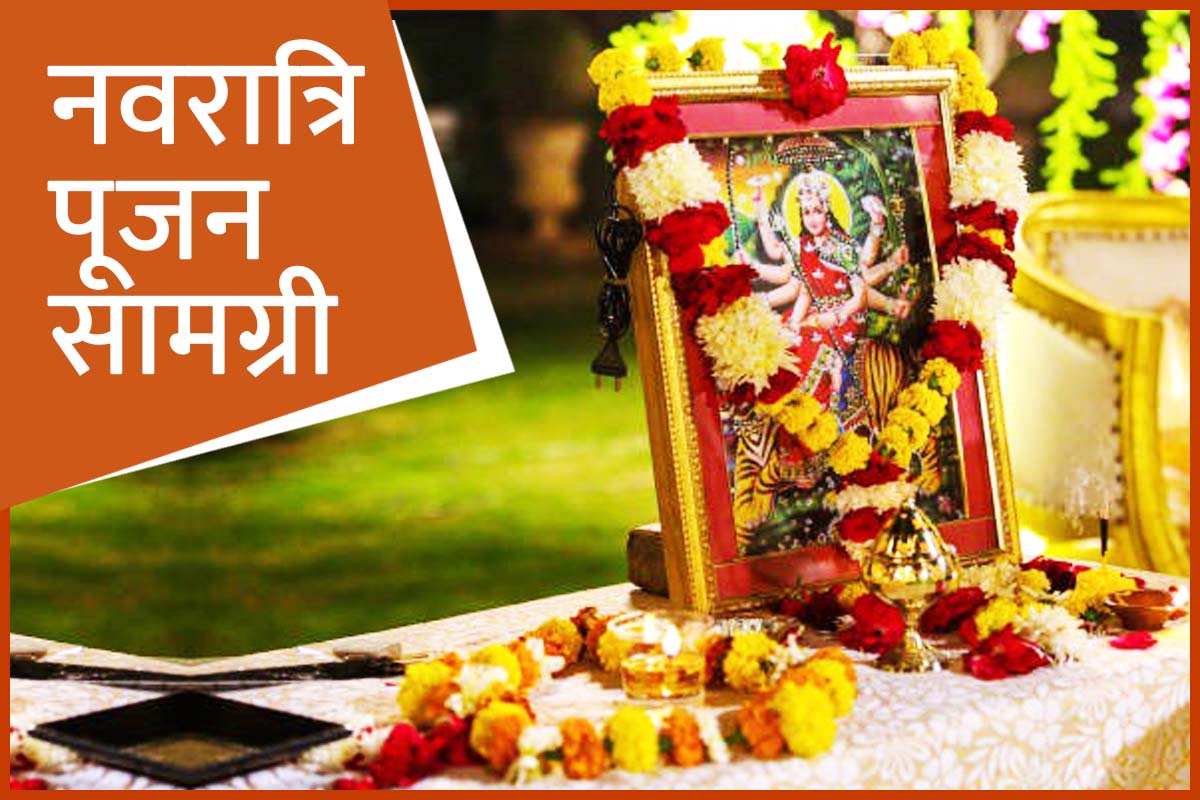घटस्थापना के लिए मिट्टी का चौड़ा पात्र, कलश, अनाज के दाने, श्रीफल, लाल कपड़ा, आम या अशोक के पत्ते, लकड़ी की चौकी, कलावा, गंगाजल, माता दुर्गा की प्रतिमा या तस्वीर, कुमकुम, रोली, अक्षत, फूलों की माला, पान का पत्ता, मिट्टी का दीपक, चावल से भरा पात्र, लाल रंग की चुनरी, स्वच्छ जल से भरा लोटा, फल, मिठाई, हल्दी, मेहंदी, हरी चूड़ियां, कान के झुमके, काजल, इत्र, बिछिया, बाजूबंद, बिंदी, मोंगरे के फूल का गजरा, नथ, दुर्गा चालीसा, दुर्गा सप्तशती पाठ की किताब।
