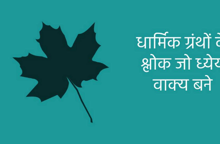 भारत की कई संस्थाओं ने धार्मिक ग्रंथों के श्लोक को ध्येय वाक्य बनाया है।