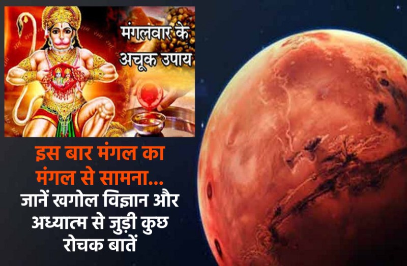 मंगल को जहां देवसेनापति माना जाता है, वहीं इस दिन के कारक देव स्वयं श्री राम भक्त हनुमान जी हैं। ऐसे में आज हम आपको दो खास बातें धार्मिक व वैज्ञानिक तौर पर बताने जा रहे हैं, ऐसे में जहां वैज्ञानिक दृष्टिकोण से इस मंगलवार को मंगल से मंगल का सामना होने जा रहा है, वहीं अध्यात्मिक तौर पर इस दिन श्री हनुमान को प्रसन्न करने की विधि के बारे में भी जान लें...