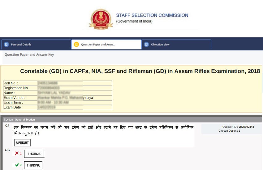SSC GD Constable Answer Key 2019