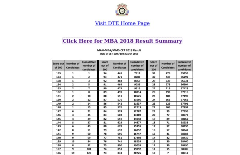 MBA CET results 2018,DTE Maharashtra,mah mba result,dte mba cet result,cet result 2018,MAH MBA CET Result 2018,