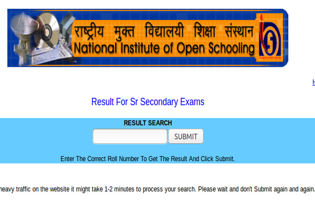NIOS 12th october exam result 2017