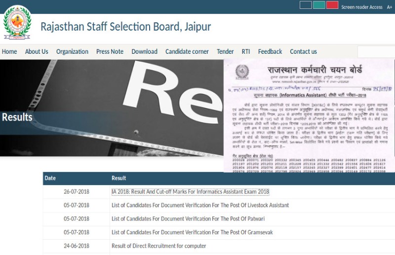 एक नजर पिछली राजस्थान इनफार्मेशन असिस्टेंट रिजल्ट एंड कटऑफ पर RSMSSB IA Result