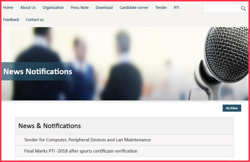 Step II - यहां होम पेज पर ही Latest News में Final Marks PTI -2018 after sports certificate verification का लिंक दिखाई देगा।