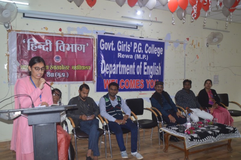 कहा, 'सत्य डगर कंटक भरी, चलता जो इंसान। जग में अपने कर्म से, बनता वही महान कार्यक्रम में प्रिंसिपल डॉ. नीता सिंह ने छात्राओं का उत्साह वर्धन किया। कार्यक्रम का संचालन अंग्रेजी विभाग की एमए चतुर्थ सेमेस्टर की छात्रा शिरीश खान ने किया। कार्यक्रम में अंग्रेजी की विभागाध्यक्ष डा.अनीता कौंशल, डा.इंद्रमणि दुबे, डा.अमरजीत सिंह सहित समस्त छात्राएं व प्राध्यापकगण उपस्थित रहे।