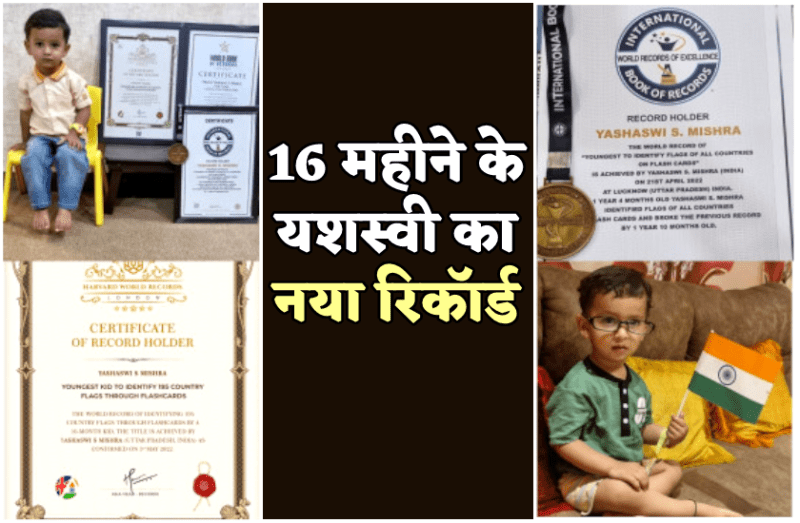 रीवा. दुनिया के सबसे कम उम्र के जीनियस के नाम से मशहूर मध्य प्रदेश के रीवा में रहने वाले यशस्वी ने एक बार फिर अपनी जोरदार याद्दाश्त के दम पर पूरी दुनिया को हैरान कर दिया है। महज 16 महीने के इस बच्चे ने दुनिया के सभी 195 देशों के राष्ट्रीय ध्वजों को पहचानकर दुनिया की दो प्रतिष्ठित संस्थाओं में अपना नाम दर्ज करा लिया है। विश्व की प्रतिष्ठित संस्था हार्वर्ड वर्ल्ड रिकॉर्ड और इंटरनेशनल बुक ऑफ रिकार्ड ने सबसे कम उम्र में ये कारनामा करने वाले बच्चे का खिताब यशस्वी एस मिश्रा के नाम करते पर दर्ज हो गया है।