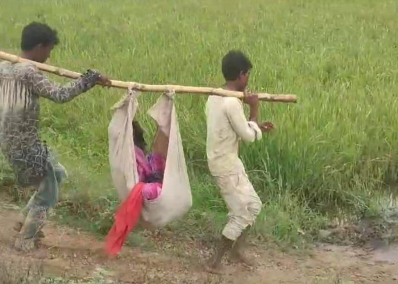 बांस में कपड़ा बांधकर गठरी की तरह शव लेकर गए परिजन