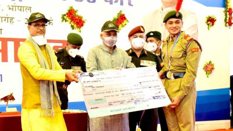 Chief Minister gives Yogesh of Rewa the best NCC Cadets of the Year award