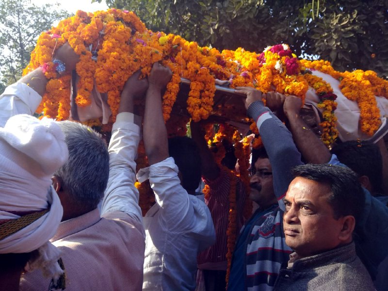 - ग्रामीणों द्वारा दी जारही श्रद्धांजली