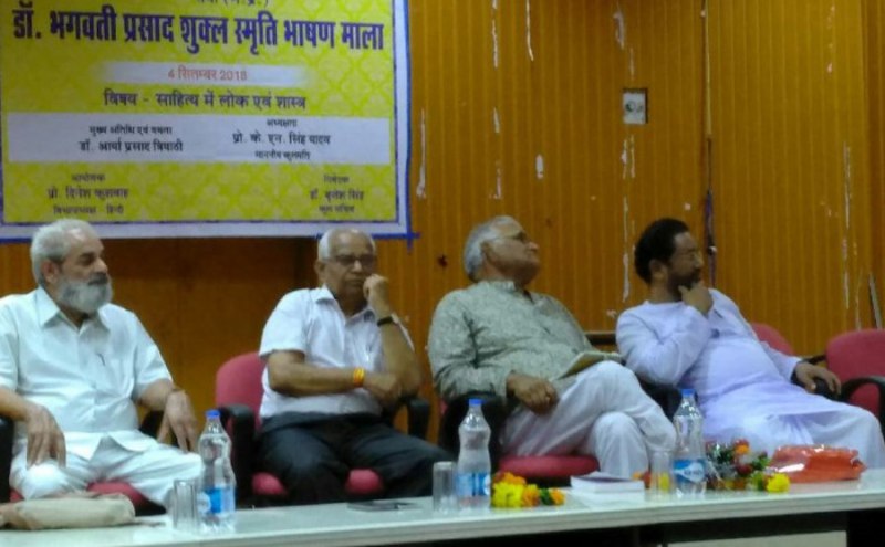 विश्वविद्यालय के पं. शंभूनाथ शुक्ल सभागार में आयोजित भाषणमाला में प्रो. त्रिपाठी ने बघेलखंड से व्याप्त कई लोकगीतों का उदाहरण भी दिया। उन्होंने डॉ भगवती प्रसाद शुक्ल को याद करते हुए कहा कि डॉ. भगवती प्रसाद अनोखे व्यक्तित्व के धनी रहे। उनके द्वारा रचित बघेली साहित्य अद्भुत रहा है। विशेष बात यह रही कि उन्होंने आदिवासियों की बीच जाकर लोकगीत संग्रहीत किया। प्रो. आर्या प्रसाद त्रिपाठी ने डॉ. शुक्ल को नई पीढ़ी के लिए प्रेरणास्रोत बताया।