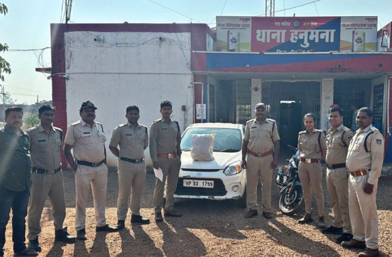 पुलिस अधीक्षक नवनीत भसीन ने सभी थानों को अलर्ट किया था। हनुमना में चेकिंग के दौरान पुलिस ने बाइक क्र. एमपी 17 एमजेड़ 7586 में सवार युवक को रोका जिसकी पहचान यज्ञभान साकेत पिता त्रिवेणी साकेत 40 वर्ष निवासी बिछरहटा थाना शाहपुर के रूप में हुई। पुलिस ने जब उससे सख्ती से पूछताछ की तो आरोपी ने कार क्र. एचपी 93-1799 से गांजा की खेप आने की जानकारी दी थी जिस पर पुलिस ने तुरंत घेराबंदी कर दी। जैसे ही कार पहुंची तो पुलिस ने उसको रोक लिया। कार में दो आरोपी सवार थे जिन्होंंने अंधेरे का लाभ उठाकर भागने का प्रयास किया लेकिन पुलिस ने उनको मौका नहीं दिया। तलाशी के दौरान कार में लोड 21 किलो 300 ग्राम गांजा बरामद हुआ जिसकी अनुमानित कीमत 2.10 लाख रुपए बताई जा रही है।