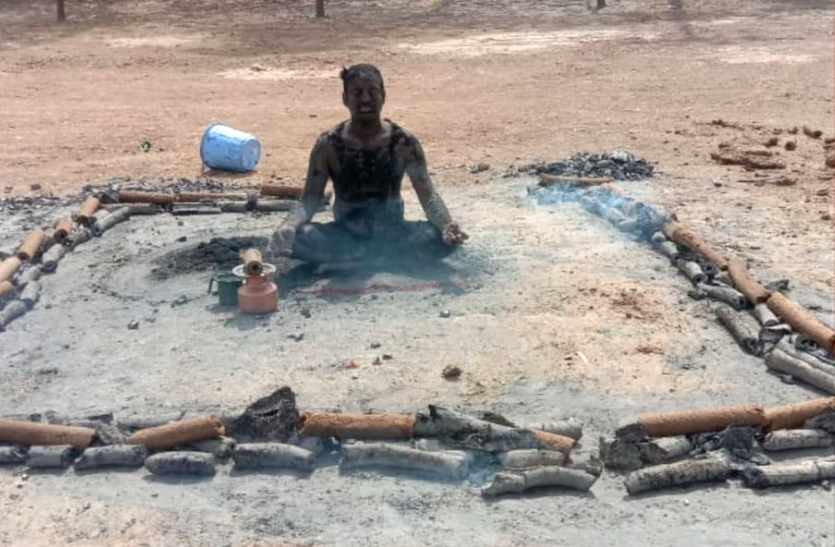 कड़ी धूंप के बीच चारों ओर जलती आग के बीच बैठकर कर रहे हैं तप