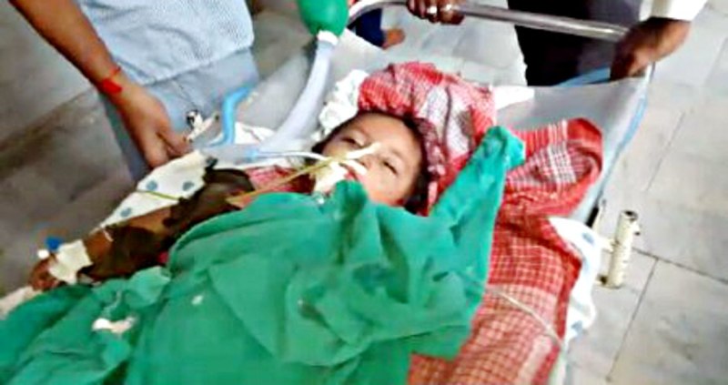 जिले के रायपुर कर्चुलियान क्षेत्र के पटना गांव निवासी शिवेन्द्र पांडेय का दो वर्षीया पुत्र रुद्र छत पर खेल रहा था। इस दौरान घर के लोग अंदर थे। तभी रुद्र सीढ़ी के जरिए उतर रहा था। सीढ़ी में रेलिंग नहीं लगी थी। सीढिय़ों पर रुद्र फिसल गया। जिससे सीधे सीढ़ी के पहले पायदान पर पिलर में निकले लोहे के छड़ के ऊपर जाकर गिरा। रुद्र के नाभी के दाहिने छोर को चीरते हुए लोहे की सरिया बाएं हाथ के पिछले हिस्से में निकला। परिजनों ने आसपास के लोगों की मदद से पिलर से सरिया को काटकर अलग किया और बच्चे को संजय गांधी अस्पताल ले गए। पौने बारह बजे परिजन उसे लेकर पहुंच गए थे। डॉक्टरों की टीम ने ऑपरेशन किया। ऑपरेशन दोपहर दो बाजे चालू होकर शाम करीब पांच बजे तक चला। डॉक्टरों ने करीब ढाई घंटे में सफल ऑपरेशन करने के बाद उसे गहन चिकित्सा इकाई के सर्जिकल वार्ड में स्थित आइसीयू में रखा है। सोमवार को डा.ॅ राजपाल सिंह और उनकी टीम में शामिल चिकित्सकों ने दूसरे दिन भी बच्चे की जांच की। डॉक्टरों ने बताया कि वेंटीलेटर पर रखा गया है। रुद्र अभी क्रिटिकल जोन में हैं। ब्लड की जांच की गई है। डॉ. राजपाल ने कहा कि इस तरह घटनाएं अक्सर एक से चार साल तक के बच्चों के साथ होती है। ऐसे में चार से पांच साल तक के बच्चों को घर में डेंजर जोन एरिया से बचाना होगा। उधर, परिजनों का रो-रोकर बुरा हाल है। रुद्र को देखने के लिए परिवार सहित सगे संबंधियों का ताला लगा रहा। इधर, चिकित्सकों के सफल ऑपरेशन की चर्चा पूरे दिन जगह-जगह होती रही।