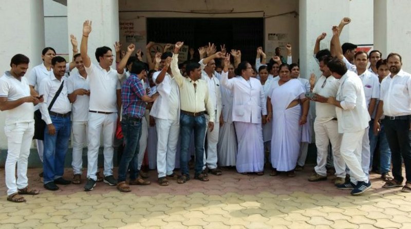 Nurse and Paramedical Staff on strike for demands in SGMH Rewa