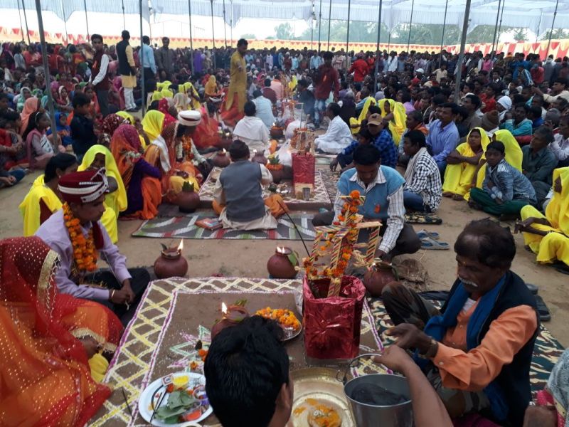 गोविंदगढ़ स्थित पोलो ग्राउंड में लक्ष्मण बाग के राजगुुरु हरिवंशाचार्य महाराज की मौजूदगी मेें वैदिक मंत्रो के साथ छह जोड़ो का विवाह राजसी ठाटबाट से कराया गया। कार्यक्रम की शुरुआत बघेल खंड सेवा संकल्प समिति के अध्यक्ष व वरिष्ठ समाजसेवी कुंवर कपिध्वज सिंह ने सपत्नीक राजगुरु हरिवंशाचार्य की पूजा अर्चना के साथ की। विवाह उत्सव की शुरुआत जयमाला के साथ हुई।
