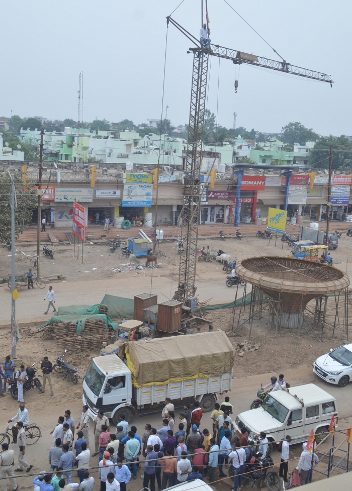 प्रतिमा स्थल पर धरना के चौथे दिन टॉवर पर चढ़ा युवक