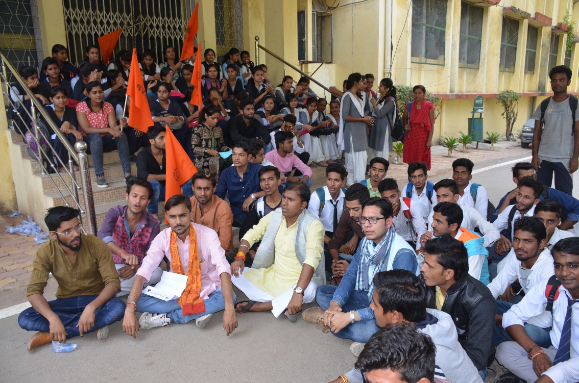 कुलपति के निर्देश पर प्रो. एसएल अग्रवाल जब गेट पर पहुंचे तो छात्रों का रूख काफी उग्र रहा। उनके तेवर देख प्रो. अग्रवाल ने चुप रहना ही बेहतर समझा। एबीवीपी के विभाग संगठन मंत्री महेश कुमार व नगर मंत्री विवेक पाण्डेय ने अधिकारियों पर छात्रों की समस्याओं के प्रति उदासीन रवैया अपनाने का आरोप लगाया।