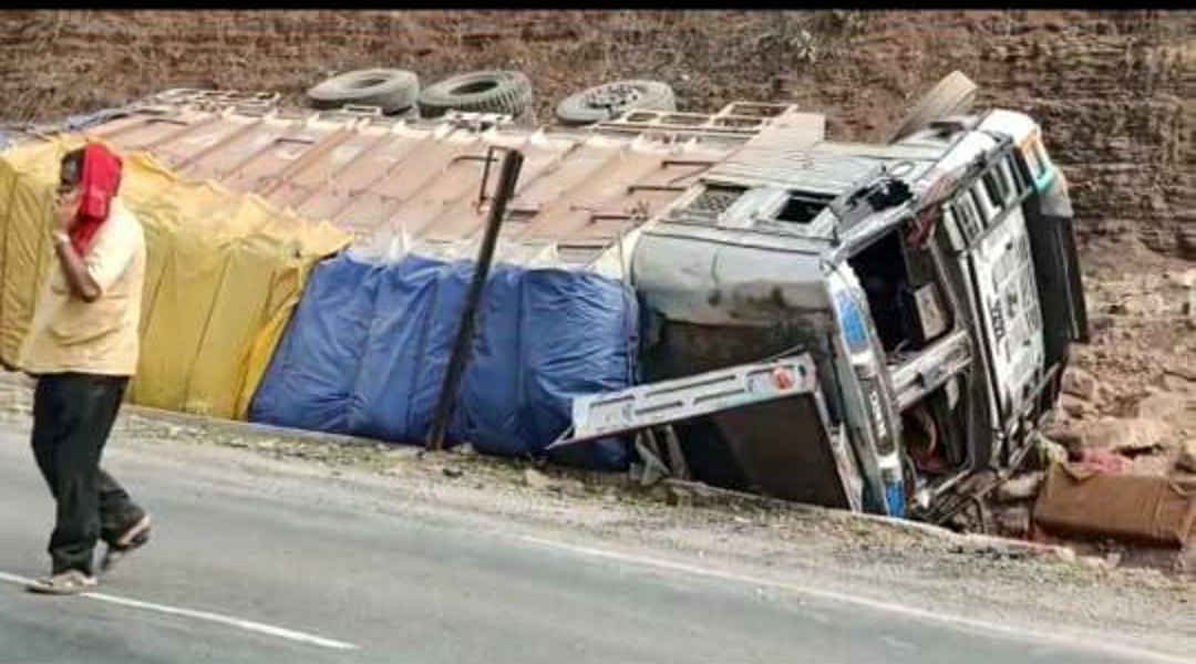 सोहागी पहाड़ में पलटा पाउडर से लोड ट्रक पलटा