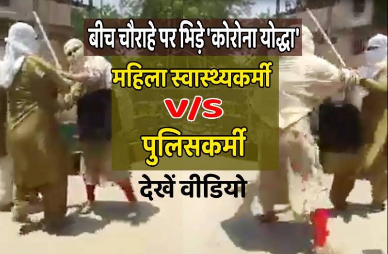 चौराहे पर भिड़े 'कोरोना योद्धा', वायरल हुआ वीडियो