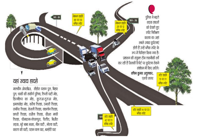 नेशनल और स्टेट हाईवे पर एेसे सभी स्थान जहां लगातार सड़क दुर्घटनाओं में लोगों की जान जा रही है वहां टर्निंग पाइंटों की चौड़ाई बढ़ाना, क्रासिंग पर कर्व और अंधे मोड पर रेडियम संकेतक और डिवाइडर्स का निर्माण कराया जा सकता है। तकनीकी एक्सपर्ट की राय से इन सुरक्षा उपायों को बिना विलम्ब क्रियान्वयन में लिया जाना चाहिए।