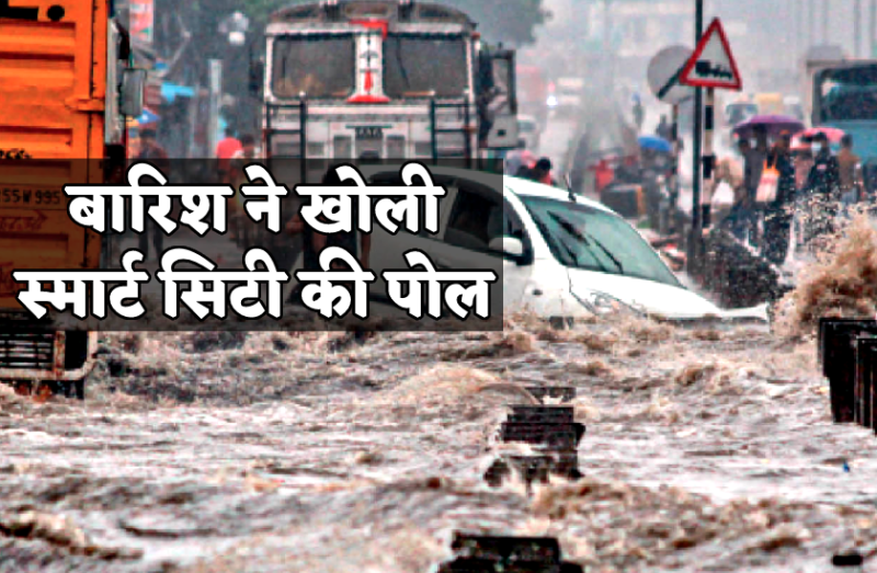 2 घंटे की बारिश में स्मार्ट सिटी के बुरे हाल, सड़कें डूबीं, घरों में भरा पानी, VIDEO