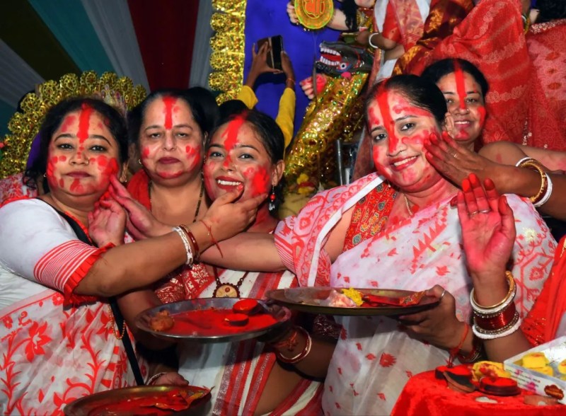 सागर . बंगाली समाज ने विजयादशमी का पर्व गुरुवार को उत्साह के साथ मनाया गया। गोपालगंज स्थित काली बाडी़ और कैंट स्थित गीता मुखर्जी कम्पाउंड में मां दुर्गा की विशेष पूजा अर्चना की गई। महिलाओं को एक-दूसरे को सिंदूर लगाया। माता रानी के जयकारे लगाए। महिलाएं पारंपरिक वेषभूषा में शामिल हुई। महिलाओं ने पहले माता रानी को गुलाल लगाया, पूजा अर्चना की फिर महिलाओं ने एक दूसरे को सिंदूर लगाया। परंपरा अनुसार नवरात्र में दशमी पर में बंगाली समाज की महिलाएं माता रानी को सिंदूर लगाती हैं और फिर एक दूसरे को सिंदूर लगाकर आरोग्य और सुख समृद्धि की कामना करती है। सिंदूर रस्म के बाद गाजे-बाजों के साथ माता की विदाई दी गई।