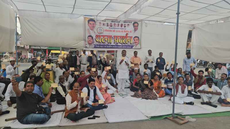 - भगवानगंज स्थित अंबेडकर प्रतिमा के पास कांग्रेस ने दिया धरना