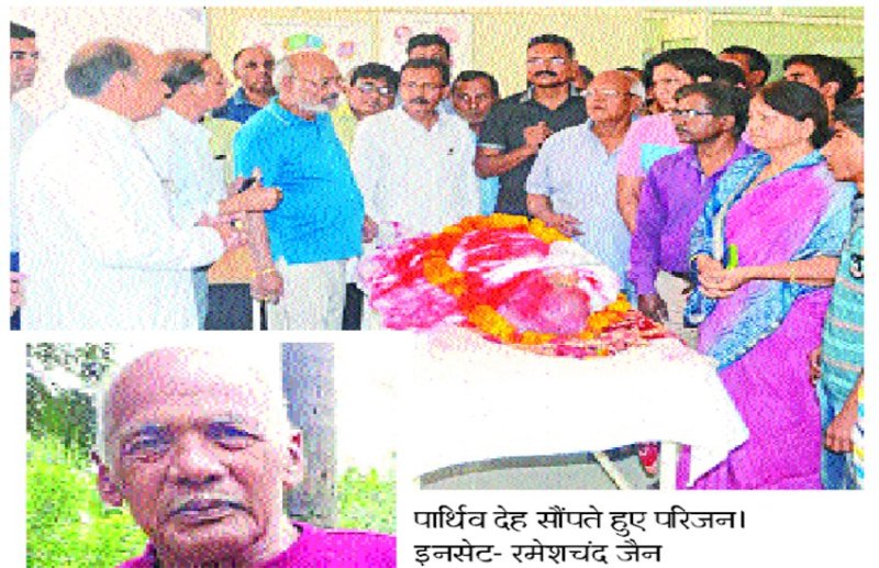 बाहुबली कॉलोनी निवासी रमेशचंद जैन मूलत: टीकमगढ़ के भेलसी गांव के निवासी थे, लेकिन वे शिक्षा विभाग की नौकरी के चलते सागर आकर बस गए। वर्ष २००३ में सेवानिवृत्त होने के बाद परिवार की कैसेट कंपनी हरदौल जो कि मुख्य रूप से बुंदेलखंडी लोक संस्कृति से जुड़ी है को समय देने लगे थे। पिछले कुछ वर्षों से उनकी तबीयत जब-तब बिगडऩे लगी थी। बेटे आलोक जैन ने बताया करीब डेढ़ साल में बार-बार अस्वस्थ होने के कारण कई ऑपरेशन कराए गए। इस बीच पिता ने उनके और अन्य भाइयों के समक्ष देहदान की इच्छा जताई थी। जब भी वे बीमार होते अपनी देह मेडिकल कॉलेज को दान करने की बात कहते थे।